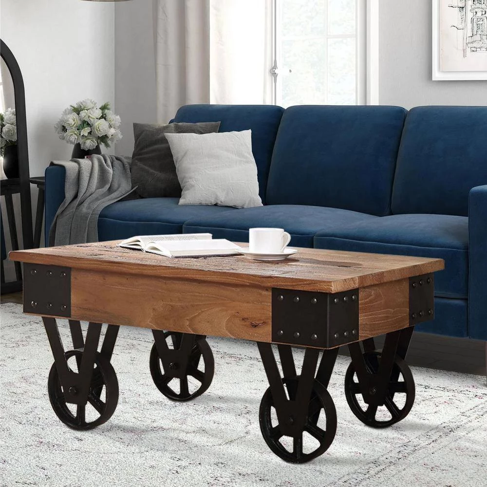 This brown coffee table on wheels is designed in a retro industrial style with a modern twist to create an elegant atmosphere in your home. It is mainly made of high-quality wood and metal and has a stable structure. And it’s designed with metal wheels so you can move it where you want. It has a large table top where you can easily place your everyday items. In addition, it also has a good load-bearing capacity.