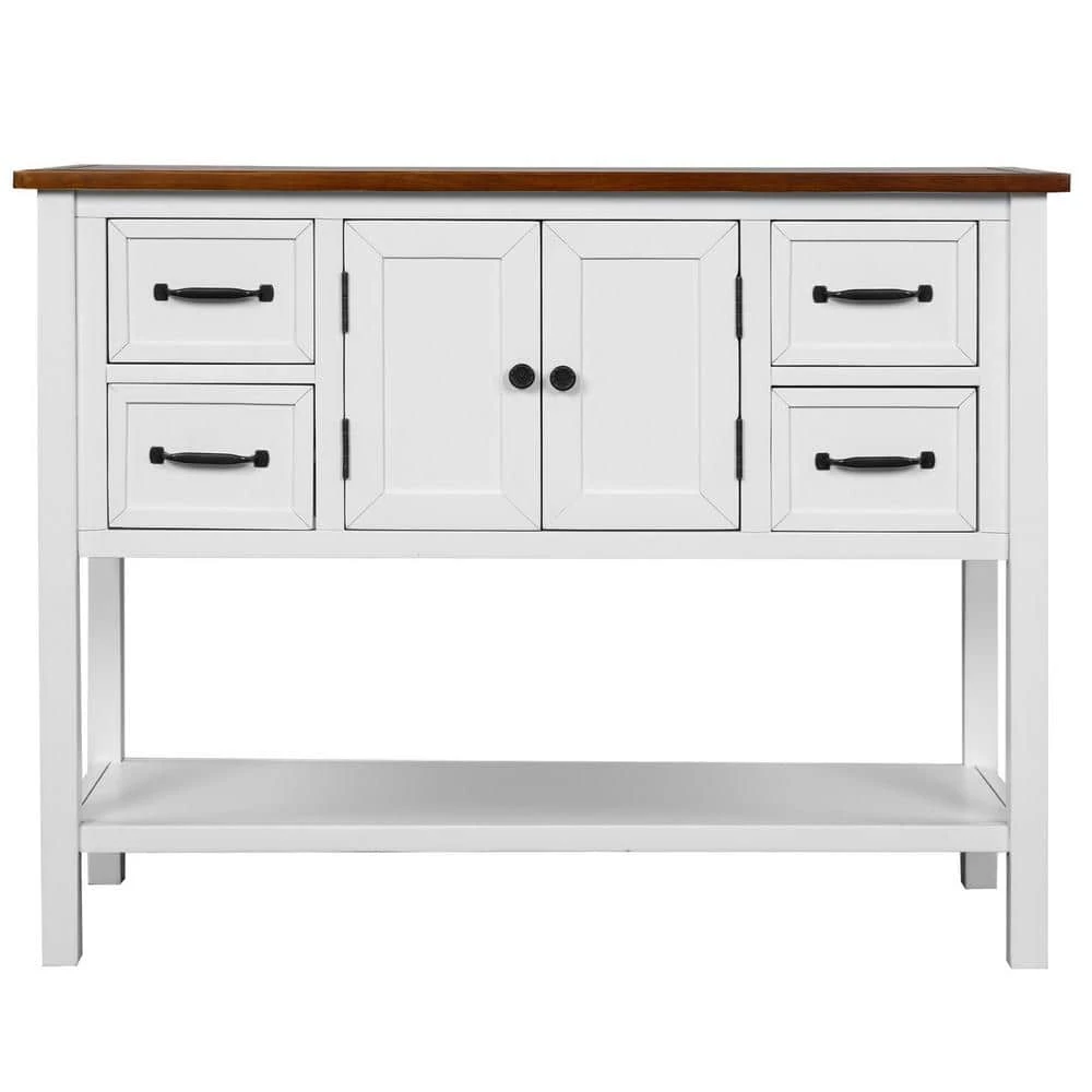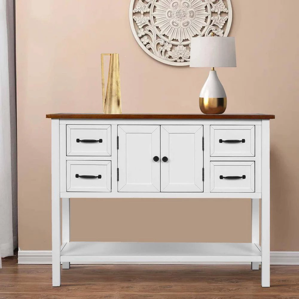 This console table has a classic vintage look with 4-drawers, 1-cupboard and 1-shelf, and plenty of storage space to give you plenty of storage. You can store and place items however you want, saving a lot of extra space. Stylish colors add more glamour to the console. It is mainly made of solid wood pine and artificial wood, which is structurally stable and durable. Also, it has a good load-bearing capacity. Good materials and unique storage design make this console table ideal for you.