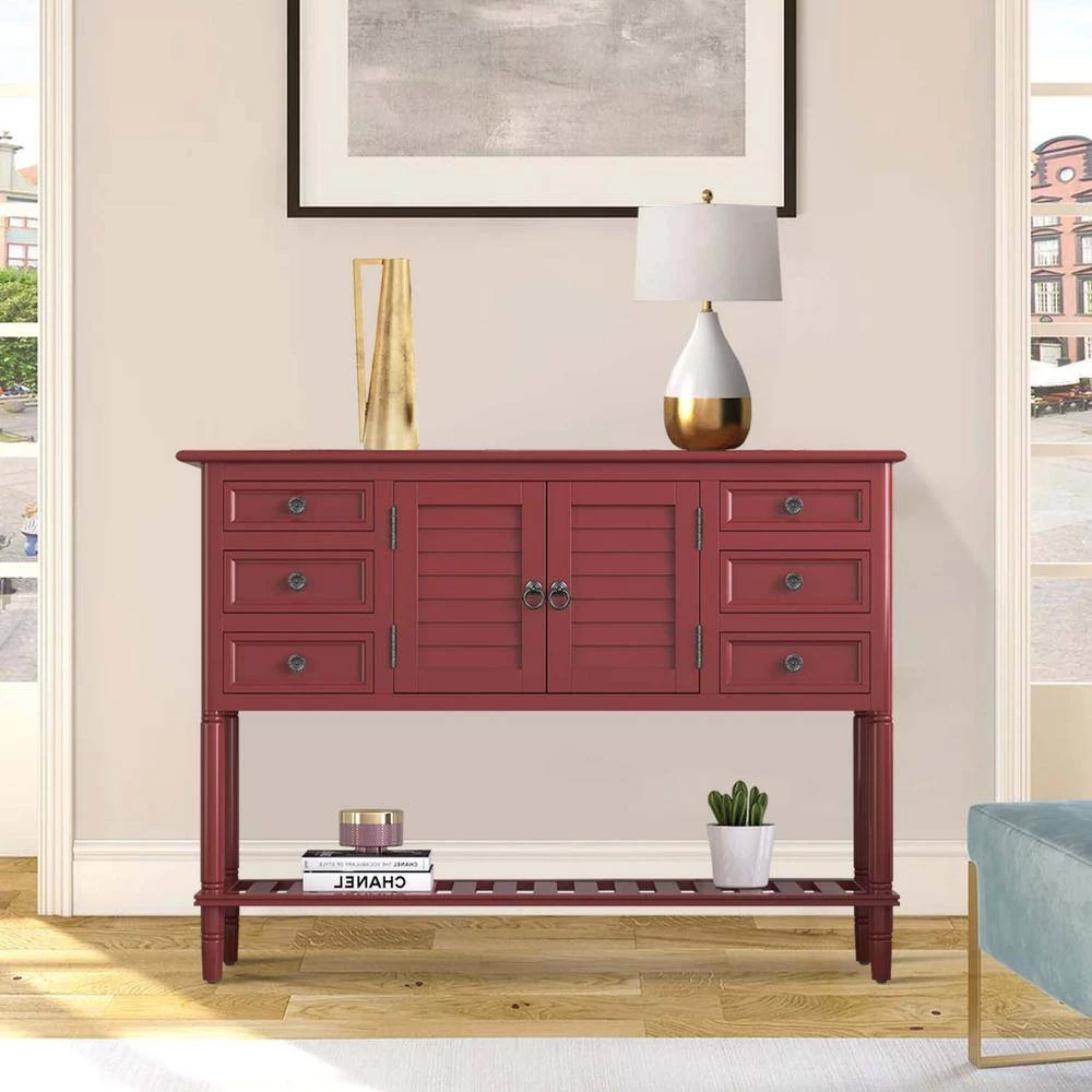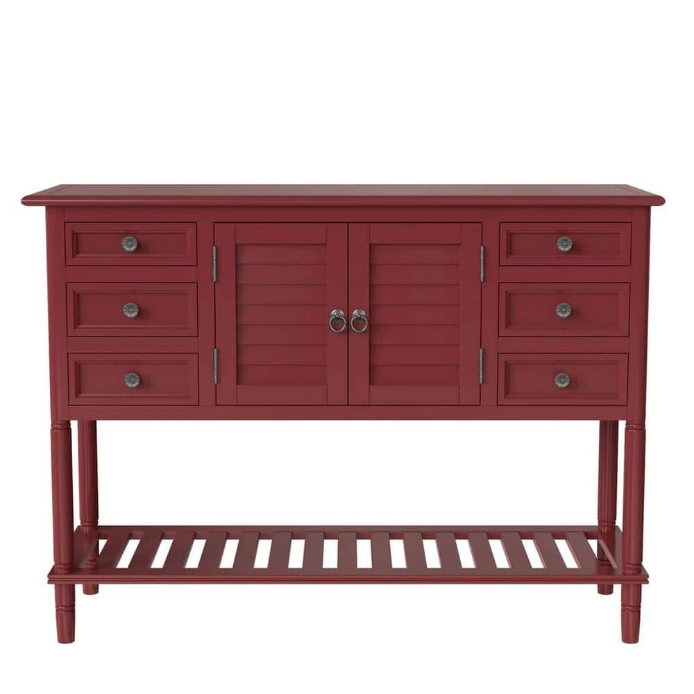 This console table has a classic retro look with 6-drawers, 1-cupboard and 1-shelf, and plenty of storage space to give you plenty of storage space. You can store and place items however you want, saving a lot of extra space. Stylish colors add more glamour to the console. It is mainly made of solid wood pine and artificial wood, which is structurally stable and durable. Also, it has a good load-bearing capacity. Good materials and unique storage design make this console table ideal for you.