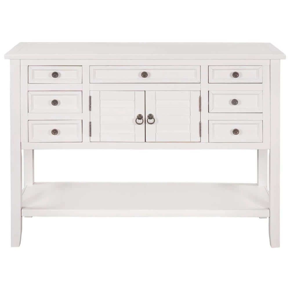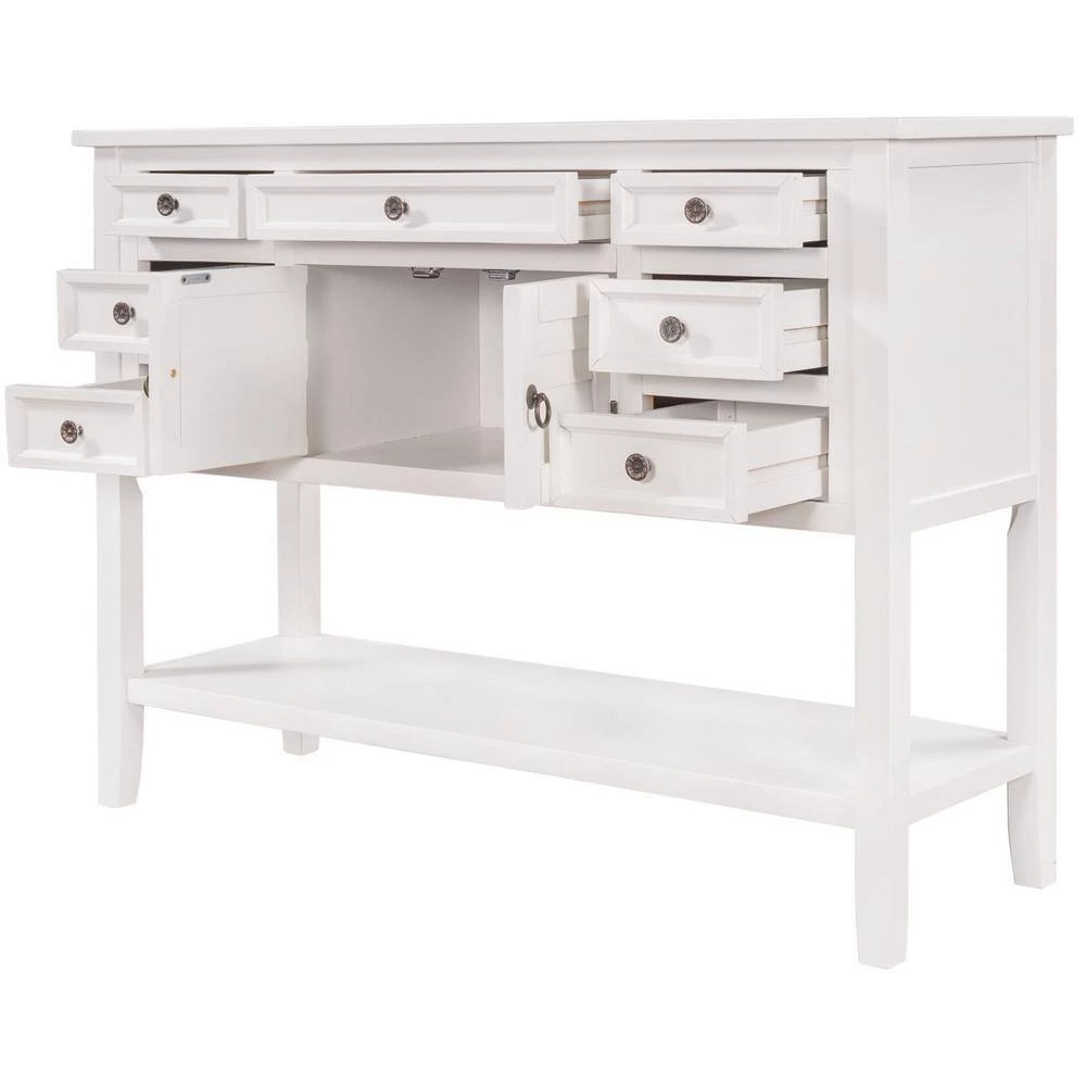 With a classic retro look, this console table has 7-drawers, 1-cupboard and 1-shelf with plenty of storage to give you plenty of storage space. You can store and place items however you want, saving a lot of extra space. Stylish colors add more glamour to the console. Mainly made of solid pine and faux wood, it is structurally stable and durable. Also, it has a good load-bearing capacity. Good materials and unique storage design make this console table ideal for you.
