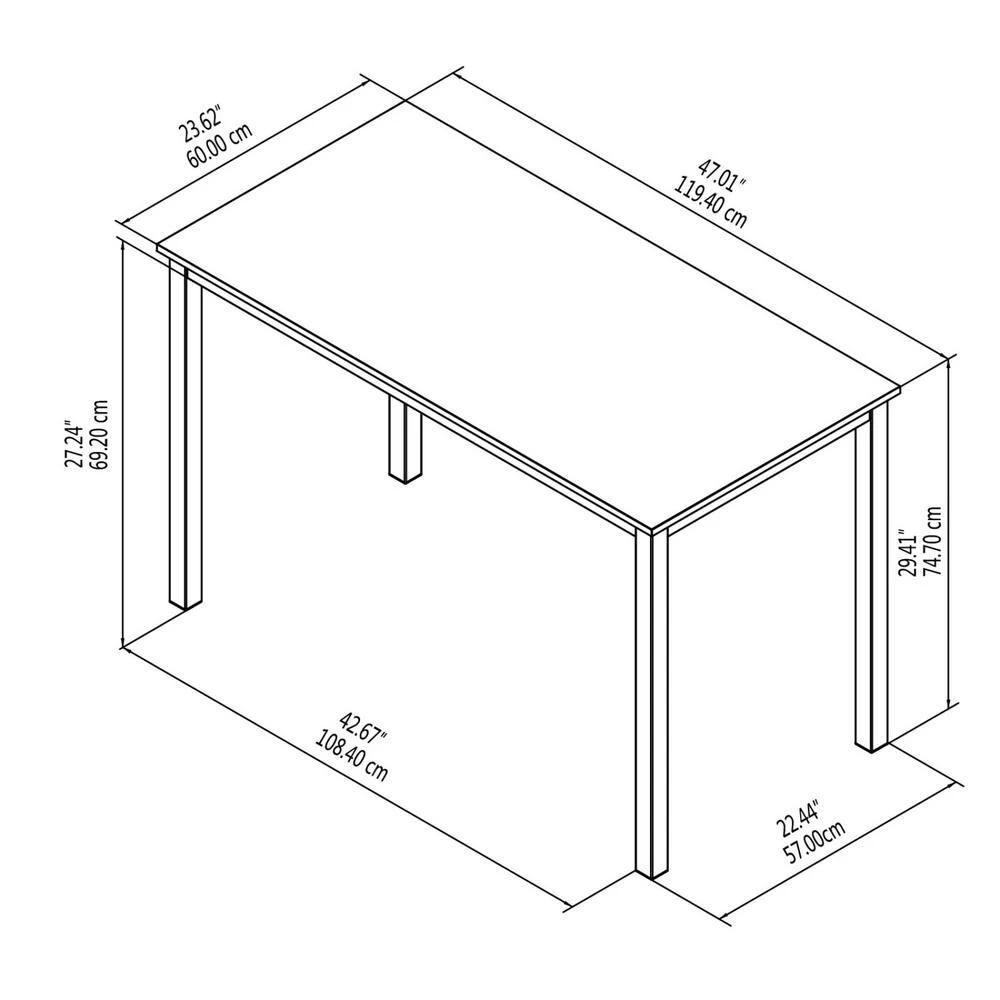 - Its overall dimensions are: 47.01 in. x 23.62 in. x 29.41 in., the table top is spacious and convenient for your use