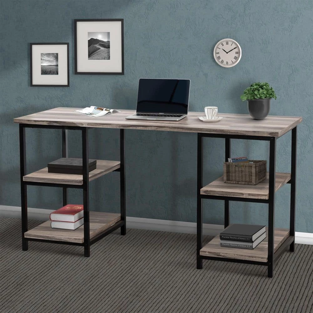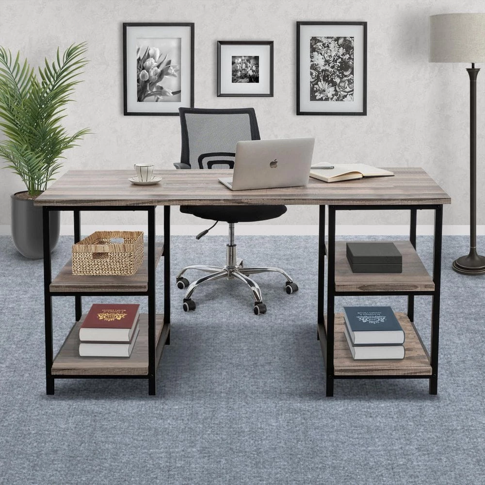 This classic computer desk with storage shelves is made of high-quality medium-density fiberboard, which is sturdy and durable. It has a classic and stylish appearance, and the 59-inch large desktop can provide you with more space for work, study or entertainment. There are 4 layers of storage shelves at the bottom of the desktop, so you can have more space for placing or storing personal items. This desk will help make your life or study more convenient and efficient.