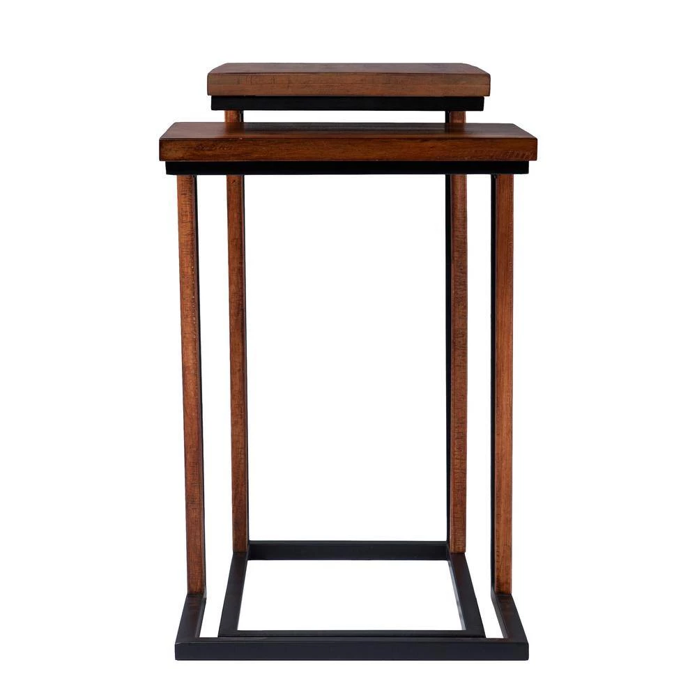 Pull up a table or 2 with this nesting C-table set. Spacious tabletops offer plenty of room for, your laptop or movie snacks, while the convenient, space saving design nests for, easy storage. Rustic tops create a chic, farmhouse feel in your living room or reading nook, bringing unique style in a sleek, mixed-material design. Get extra space where you need it mostwhen you place these nesting tables alongside your sofa or in your open concept living space.