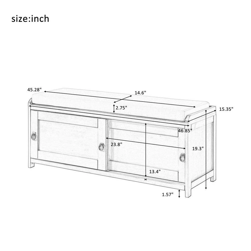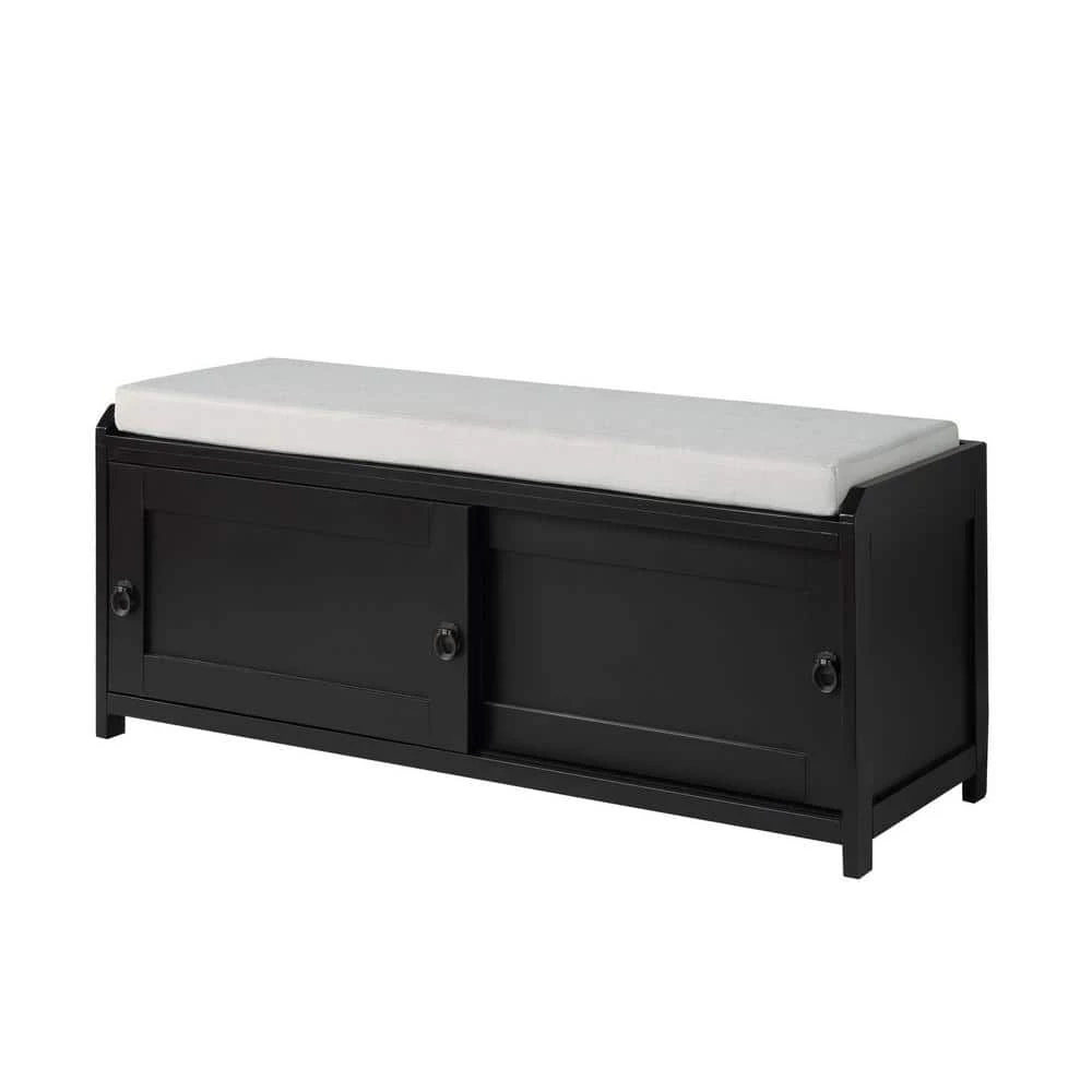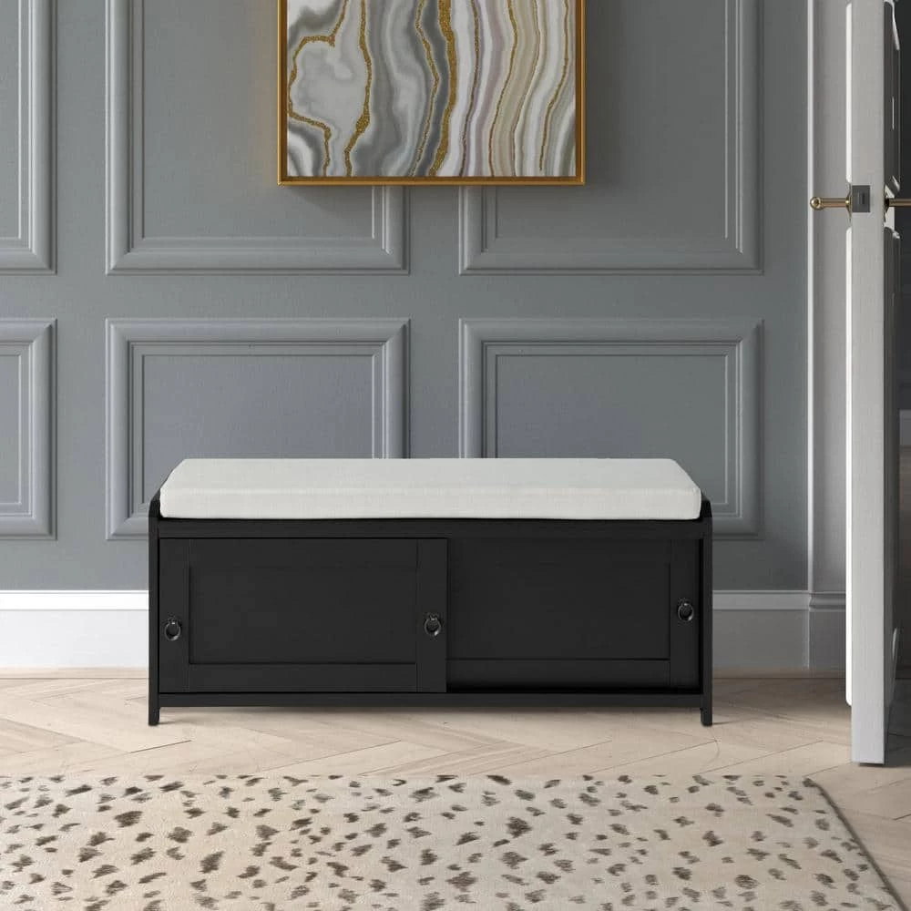 This black multifunctional storage bench is beautifully shaped and has a sleek design. It is mainly composed of high-quality solid wood frame and soft cushion, which is solid and durable. It’s designed with 2 cabinets for you to put some household items etc, it’s perfect for stacking boots and flats underneath and provides a convenient place for guests to sit and take off their shoes. Plus, it’s easy to clean, you can wipe it off quickly with a dry cloth.