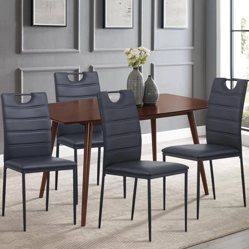 This classic black dining chair has an exquisite appearance and stylish design. Its structure is mainly made of high-quality metal, with stable structure and durability. Its seat finishes are mainly made of high-quality leather and the seat texture is soft, making you more comfortable to sit on. At the same time, its maximum load-bearing capacity is up to 220 lbs., with good load-bearing capacity, suitable for your long-term use.