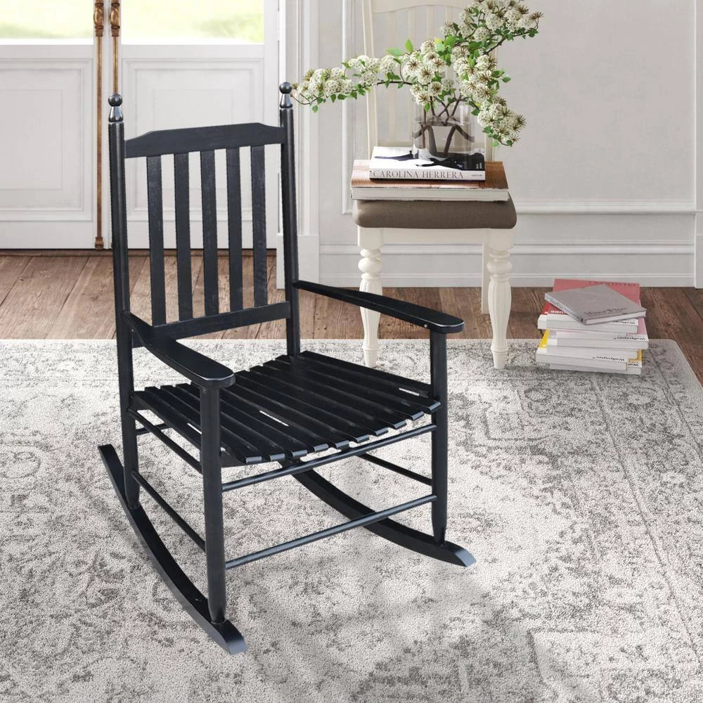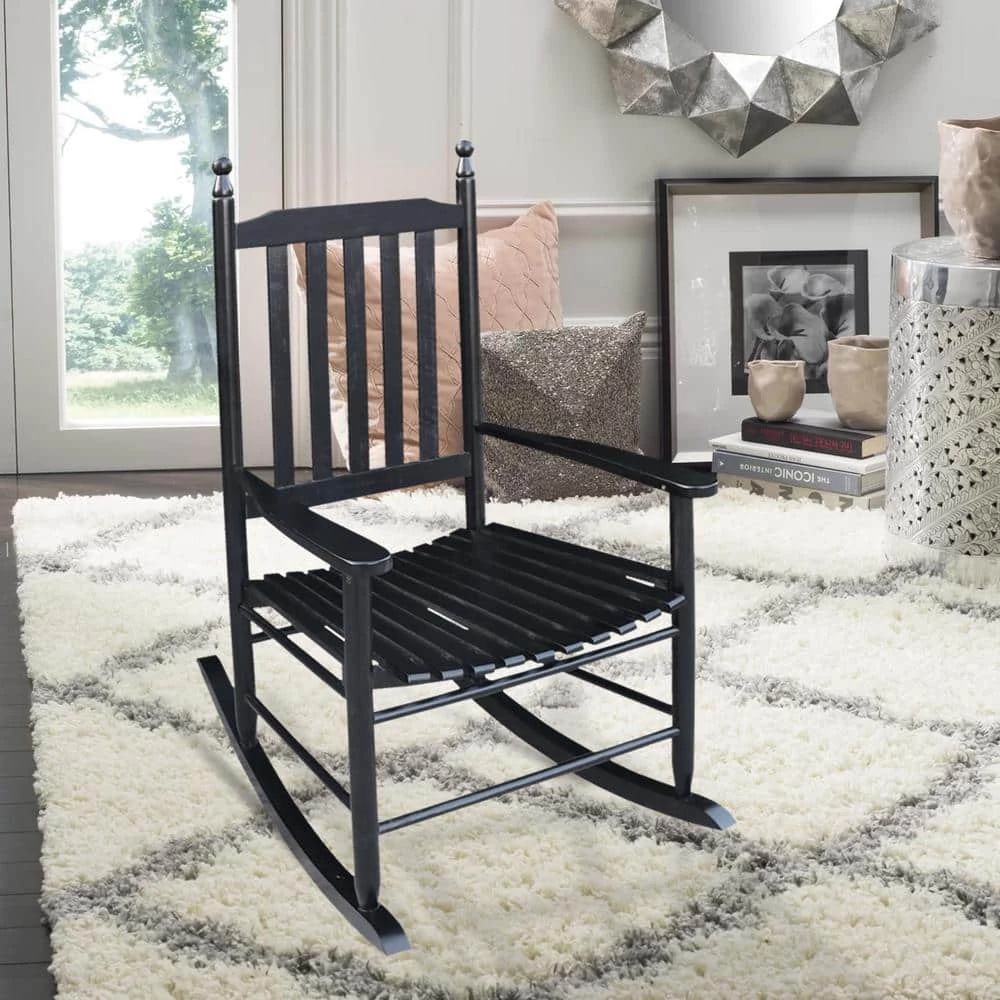 This classic black rocking chair has an exquisite appearance and stylish design. It is mainly made of high-quality wooden materials and has a strong structure. At the same time, it has good load-bearing capacity, the maximum load-bearing capacity is up to 280 pounds, and it is durable. Sturdy slatted backrest to ensure your comfort and safety during rest, allowing you to enjoy an extraordinary experience.