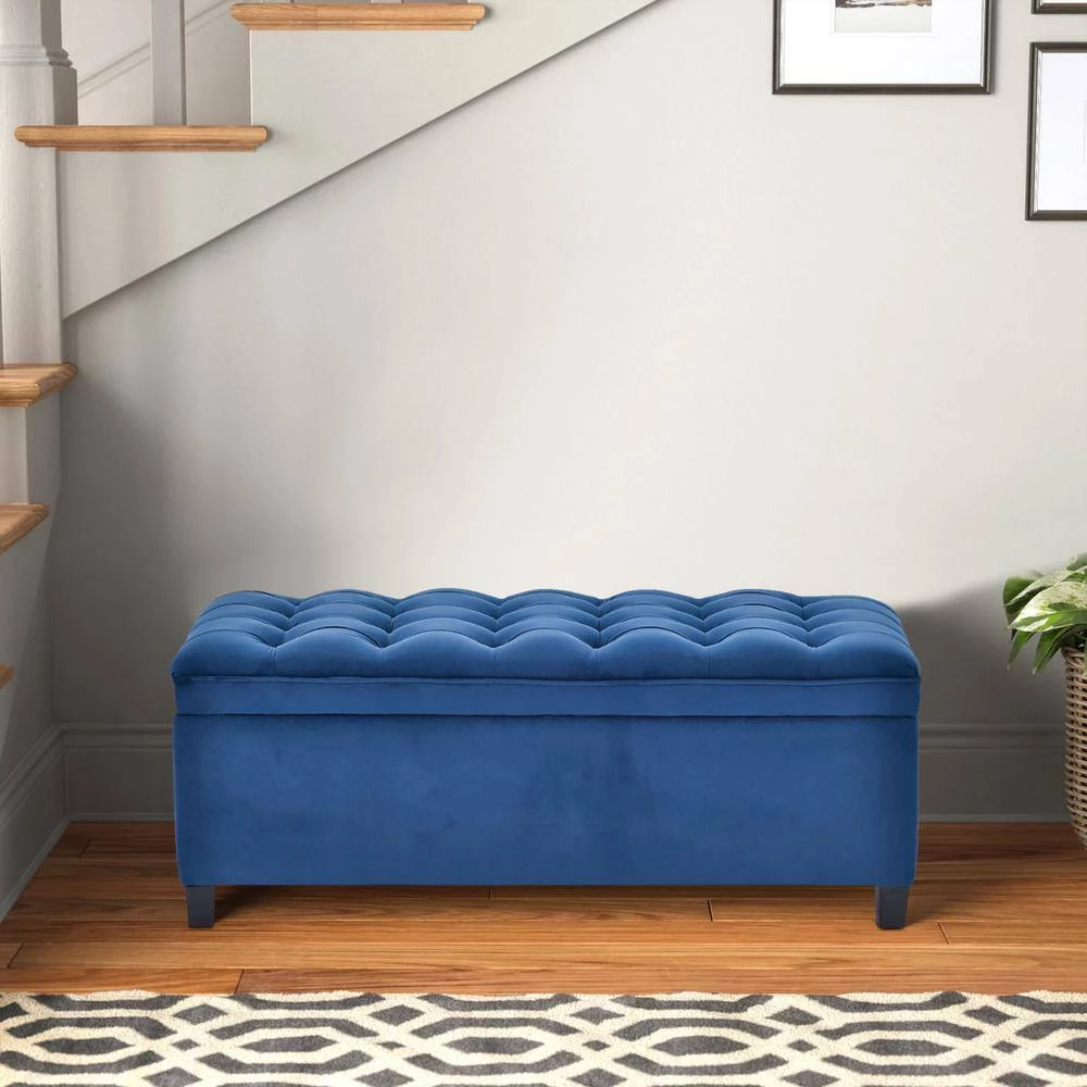 This blue multifunctional bench is exquisite in shape and stylish in design. It is mainly composed of high-quality solid wood frame and soft cushion, which is strong and durable. The top can be opened, and there is a storage space designed to facilitate you to put some daily necessities. It is also equipped with high-quality polyester fiber upholstered seats with foam cushions, which are soft and comfortable, making you more comfortable when you sit down. This is a choice you should not miss.