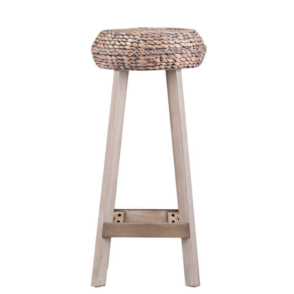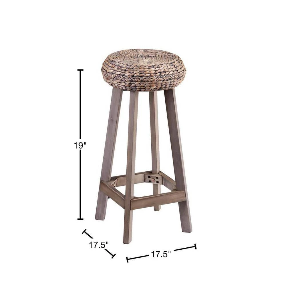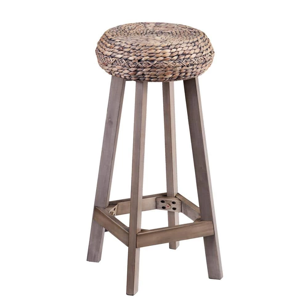Round up spare seating with these backless bar stools. Bohemian inspired, gray-washed woven hyacinth crafts an enticing seat, coalescing with weathered gray base for an eclectic take on soft coastal style. From the breakfast bar to an evening cocktail hour, these round bar stools fit in, bar none. Weathered, gray-washed finish and natural hyacinth will vary crafting unique style.