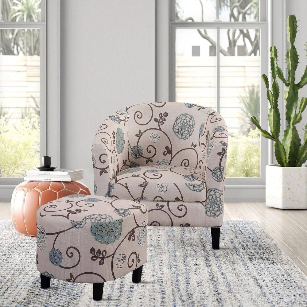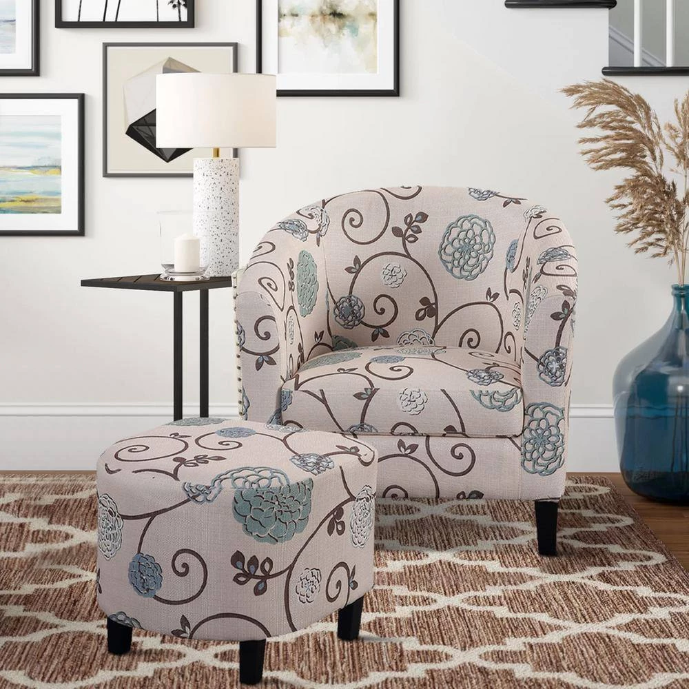 This upholstered chair with solid wood legs is beautiful in appearance and stylish in design. It can decorate your living room or bedroom more beautifully and elegantly. It has curved edges, the cushion is filled with thick foam and high-quality linen fabric, which is very soft and comfortable. There is an extra step stool, which can be used as a perfect foot rest or as an extra seat, which is very practical and convenient. This upholstered chair can provide a wonderful look to decorate your living area.