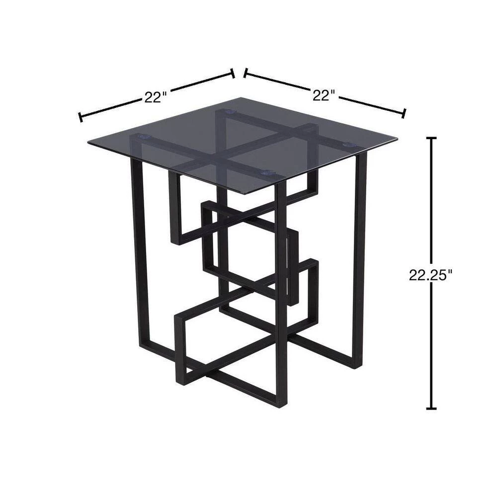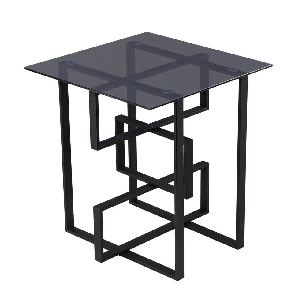 Your living space goes sleek and modern with this square side table. A gray glass tabletop easily holds a table lamp and your evening drink, while the unique metal base gives your design geometric flair. Tuck this glass-top end table alongside your family room sofa to keep your book or TV remote within reach, or station in your entryway to hold your favorite potted plant. Give your home a contemporary edge with this black accent table.