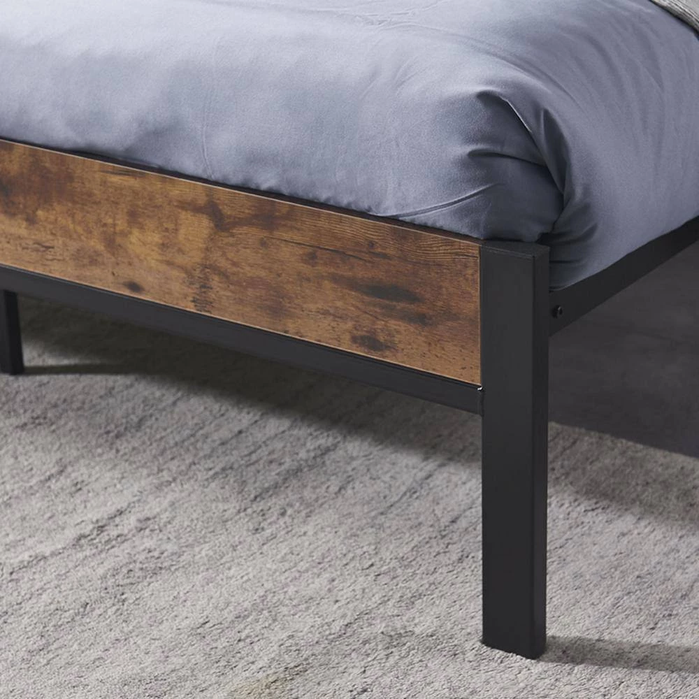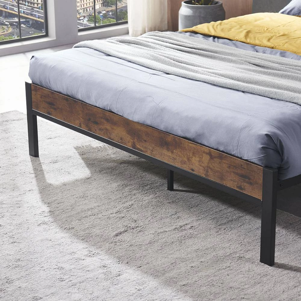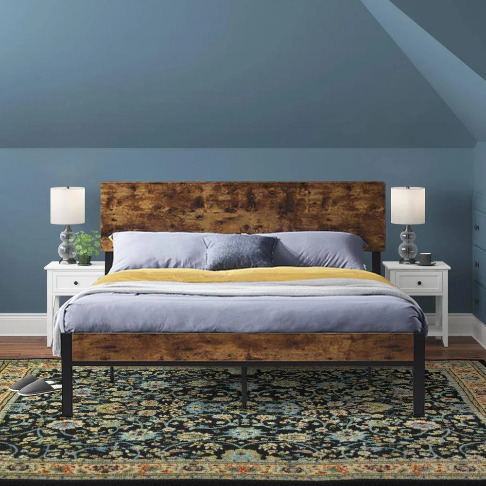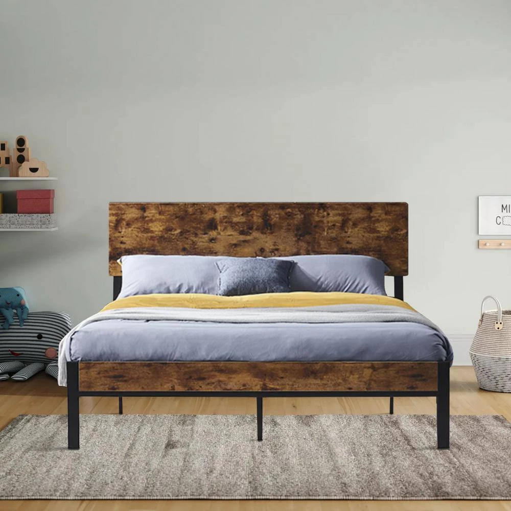 This dark brown full-size metal platform bed frame has a wooden headboard and footboard, modern in shape and simple in design. It is mainly made of high-quality wood and metal, with strong structure and durability. At the same time, it has good load-bearing capacity, the maximum load-bearing capacity can reach 600 pounds, suitable for your long-term use. In addition, it is easy to install, suitable for any mattress type and modern style of any bedroom.
