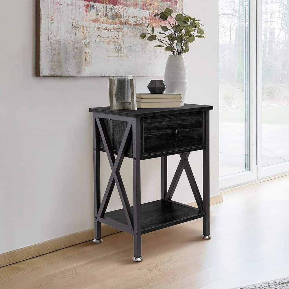 - Classic X-shaped Design: The nightstand with drawer features a clean-lined X-shaped design side for a look that works in both classic and contemporary aesthetics.