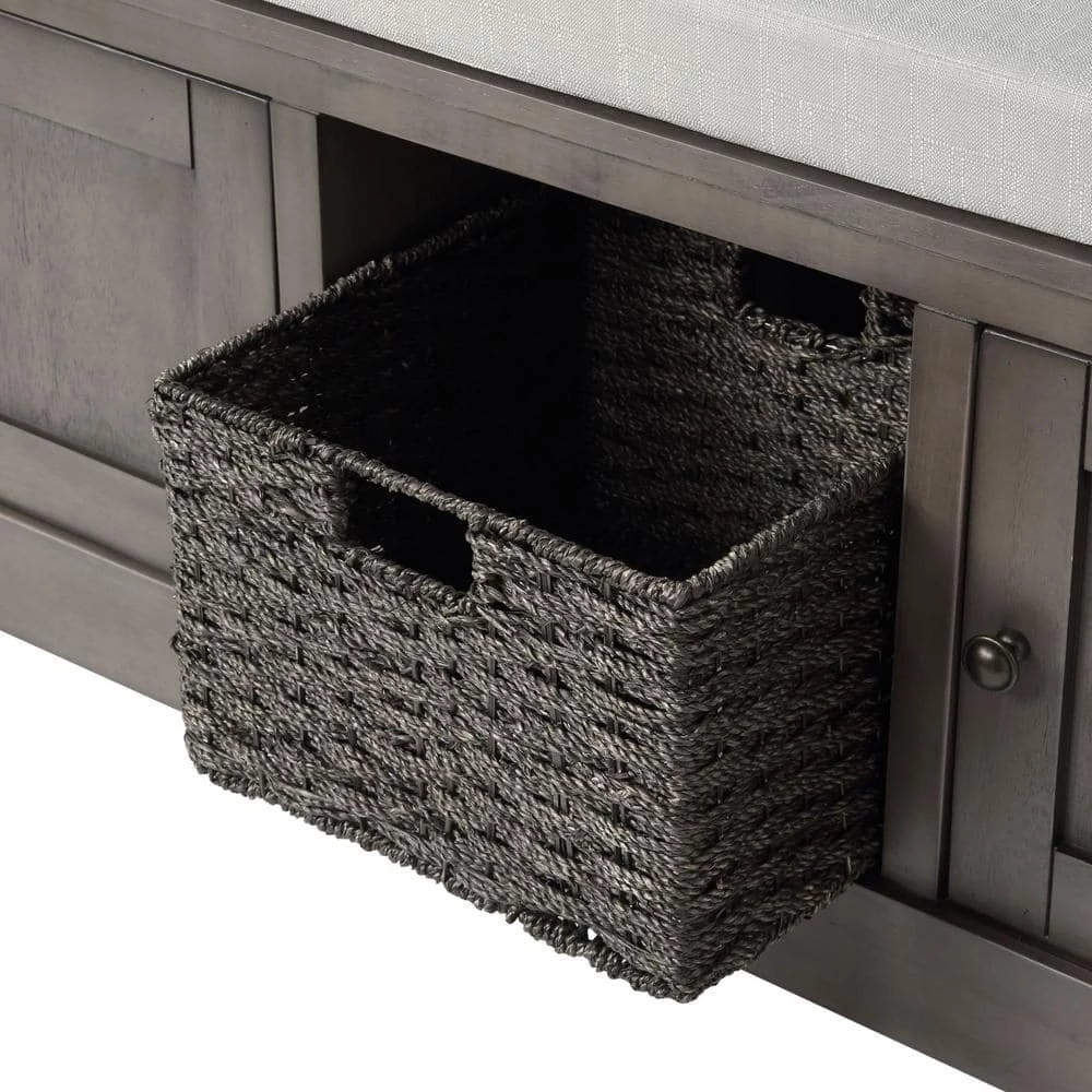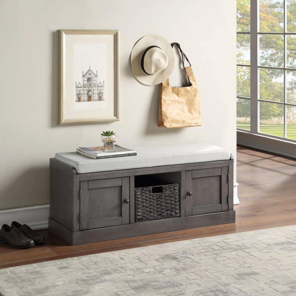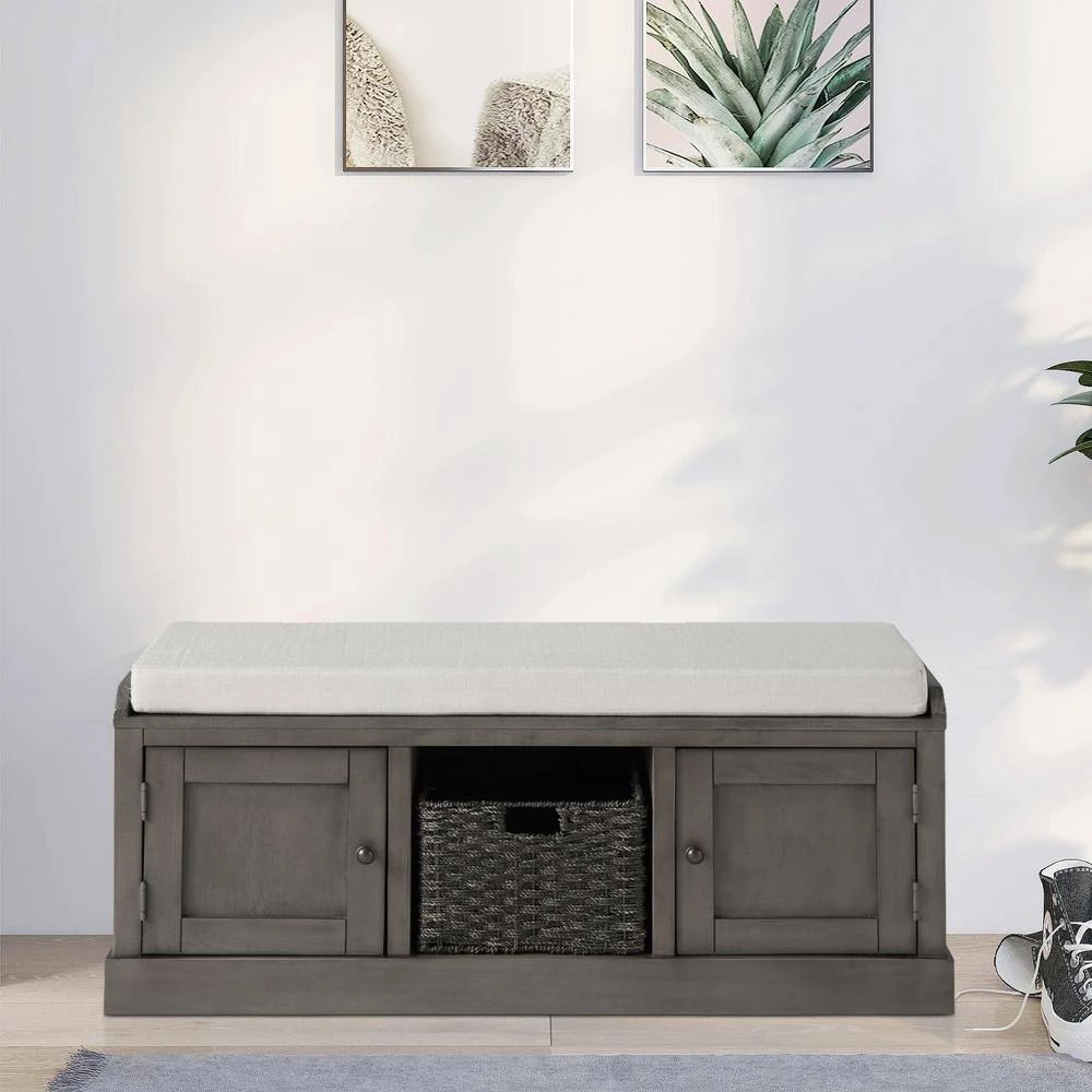 This grey multifunctional storage bench is beautifully shaped and has a sleek design. It is mainly composed of high-quality solid wood frame and soft cushion, which is solid and durable. It is designed with 2-cabinets and 1-basket for you to put some household items etc. it is perfect for stacking boots and flats underneath and provides a convenient place for guests to sit and take off their shoes. Plus, it’s easy to clean, you can wipe it off quickly with a dry cloth.