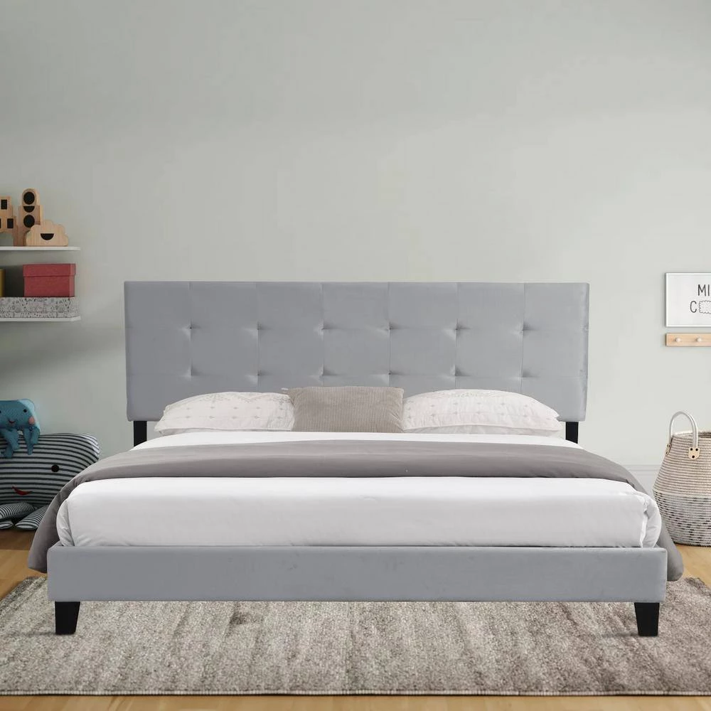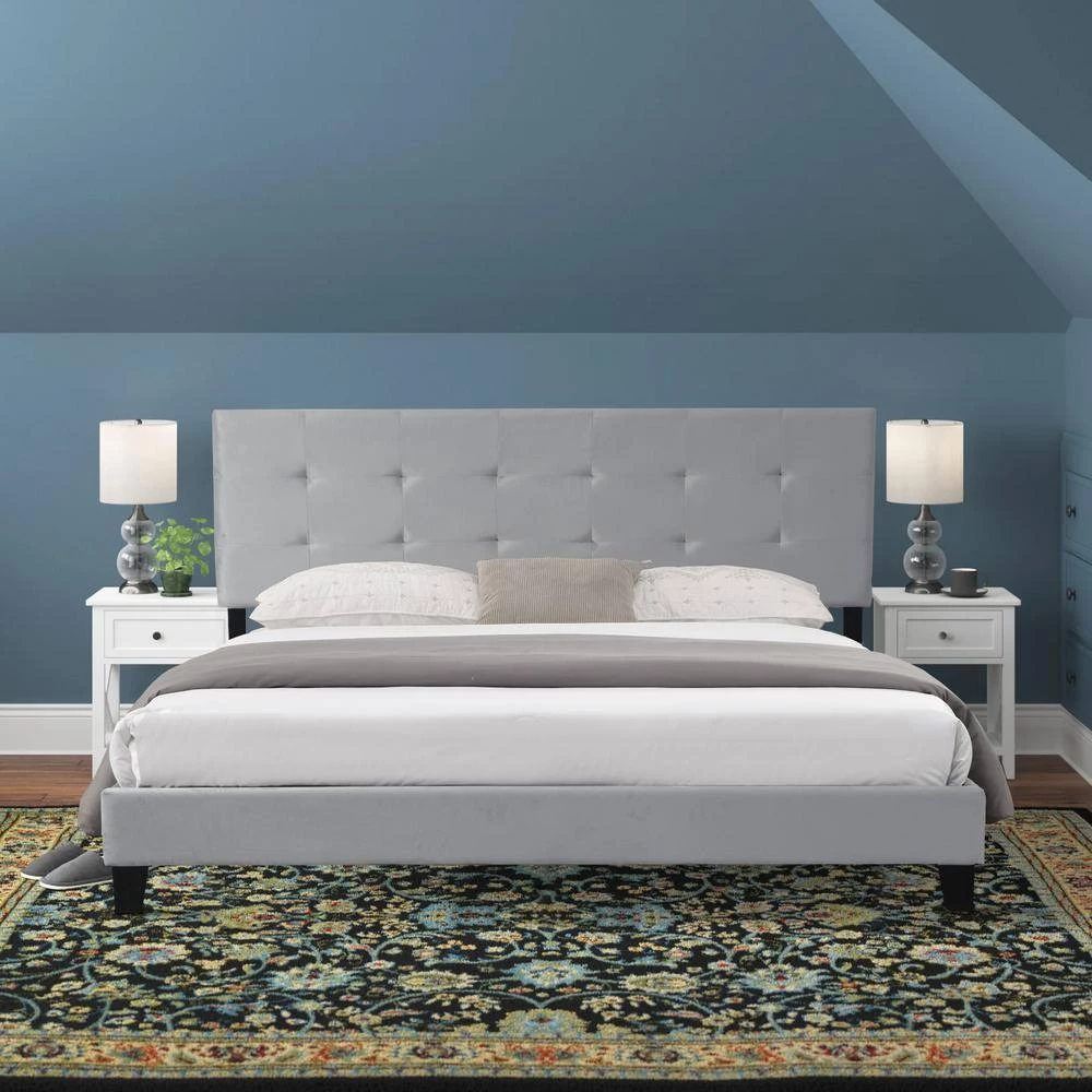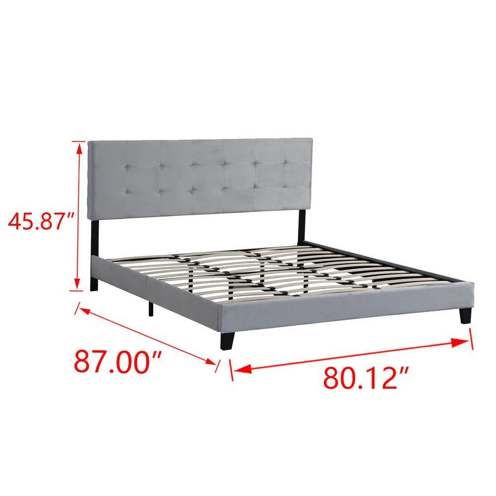 This king-size bed frame with pull-point tufted headboard, sturdy wooden cushion support and mattress base is modern in shape and simple in design. It is mainly made of high-quality wood and velvet, with a strong structure and durability. At the same time, it has good load-bearing capacity, the maximum load-bearing capacity is up to 600 pounds, suitable for your long-term use. In addition, it is easy to install and can be suitable for any mattress type and modern style of any bedroom.