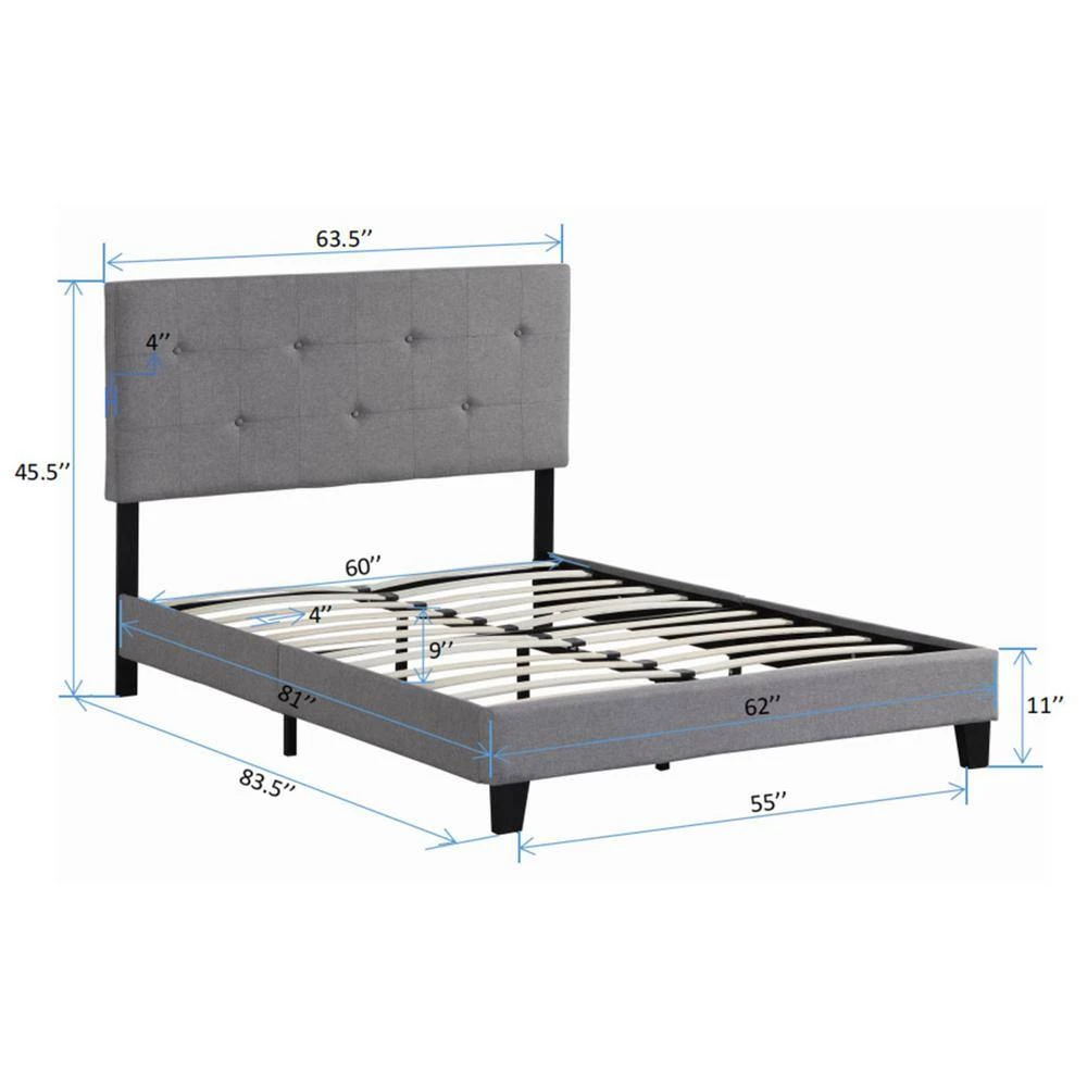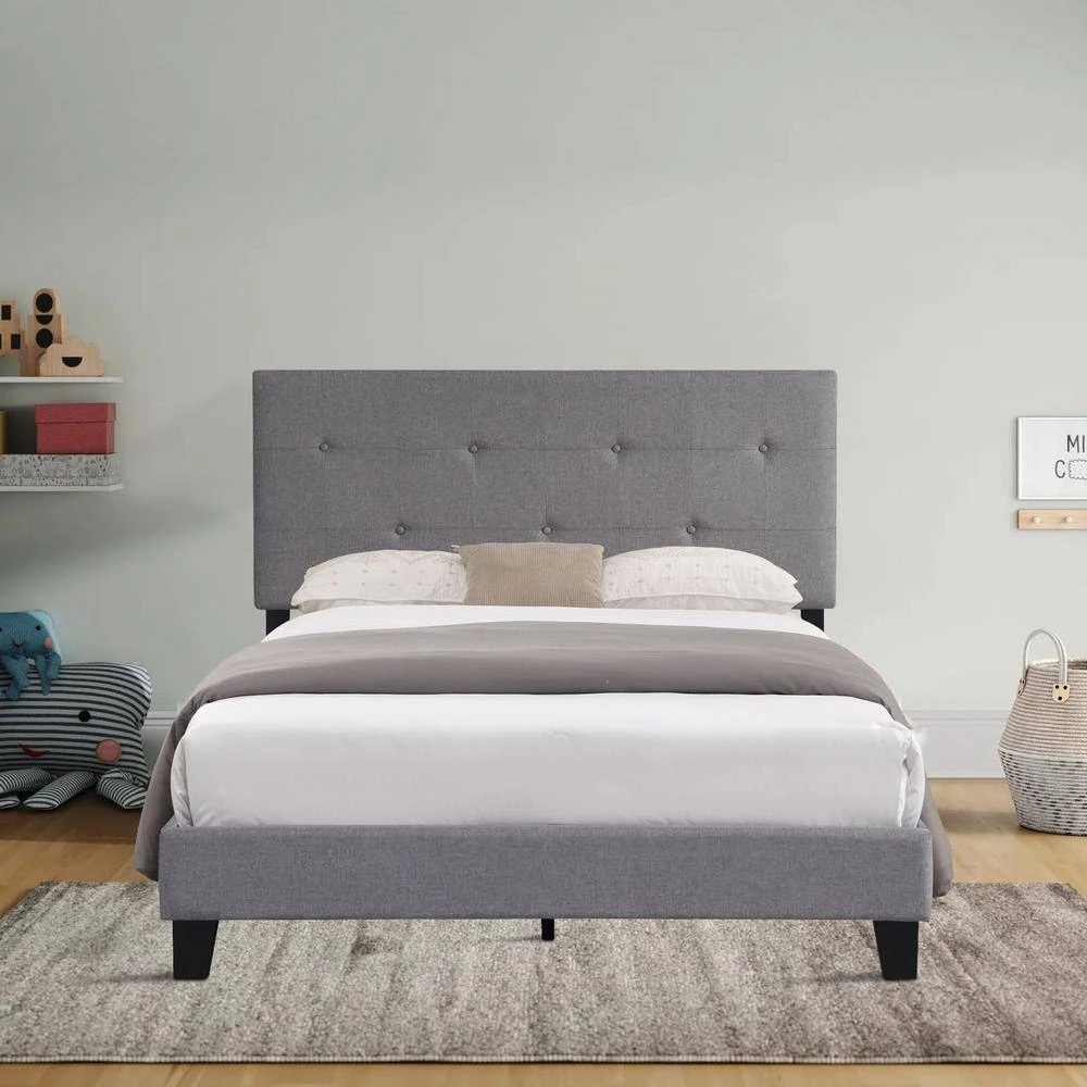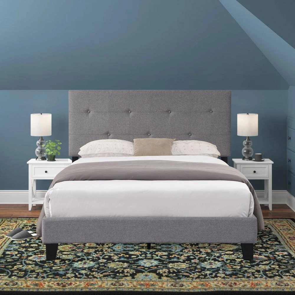 This queen-size metal bed frame with button-tufted linen headboard is modern in shape and simple in design. It is mainly made of high-quality linen fabric and wood, with a strong structure and durability. At the same time, it has good load-bearing capacity, the maximum load-bearing capacity is up to 500 pounds, which is suitable for your long-term use. In addition, it is easy to install and can be suitable for any mattress type and modern style of any bedroom.