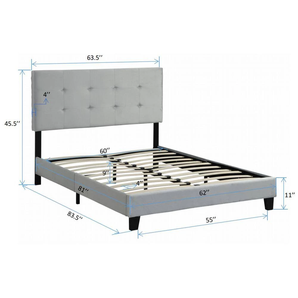 This queen-size bed frame with pull-point tufted headboard, sturdy wooden cushion support and mattress base is modern in shape and simple in design. It is mainly made of high-quality wood and velvet, with a strong structure and durability. At the same time, it has good load-bearing capacity, the maximum load-bearing capacity is up to 600 pounds, suitable for your long-term use. In addition, it is easy to install and can be suitable for any mattress type and modern style of any bedroom.