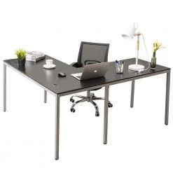 55 in. Rectangular Brown Particleboard No Drawer Computer Desk with Metal Table Legs by Huluwat