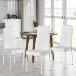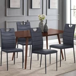Black Leather Painted Metal Leg Modern Dining Chair with Cushion and High Back (Set of 4) by Huluwat