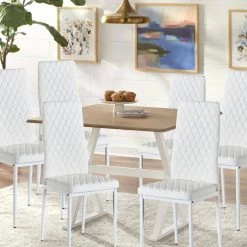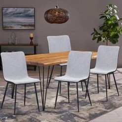 Light Gray Fireproof Leather Modern Minimalist Metal Dining Chair (Set of 6) by Huluwat