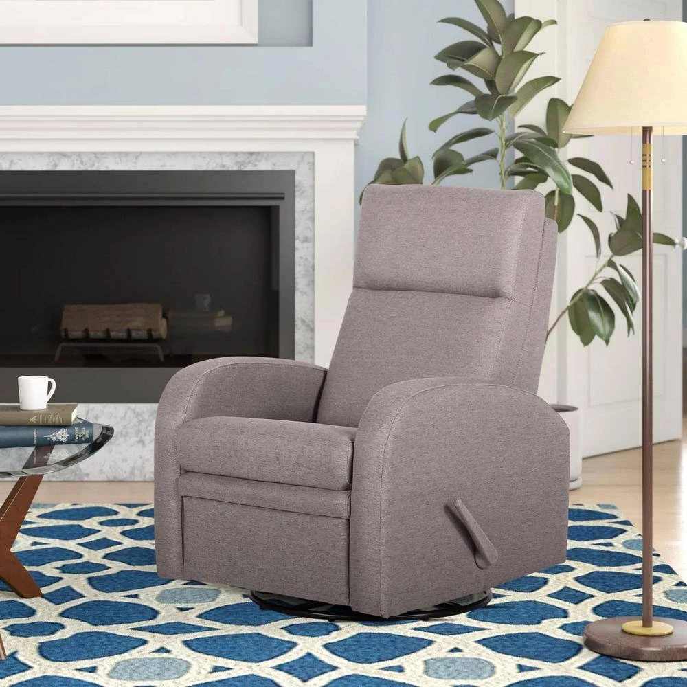 - The 100% polyester fiber cushion is wrapped in a light gray fabric surface. This recliner is exquisitely made, has good abrasion resistance, is breathable and soft. It will make you feel more comfortable to sit