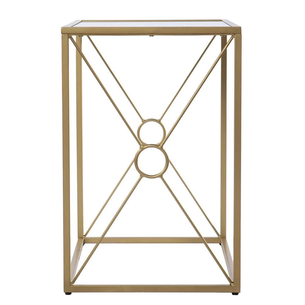Dress up your living room with this transitional end table. An antiqued mirror tabletop crafts a classic look while the gold frame adds a modern touch to your living space. Slide this rectangular side table into your open concept space for a hint of glam, or place next to your sofa to hold a table lamp and your morning coffee. Reflect your unique style when you bring home this mirror-top side table.