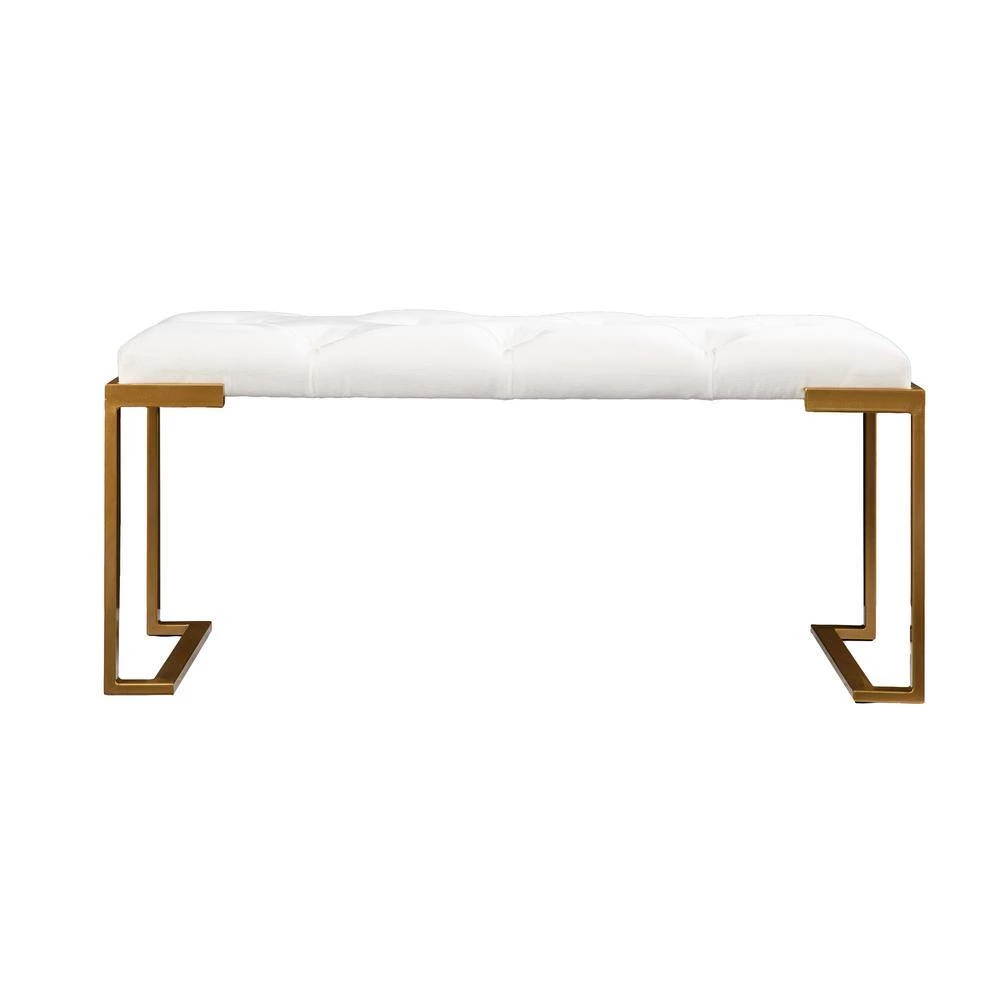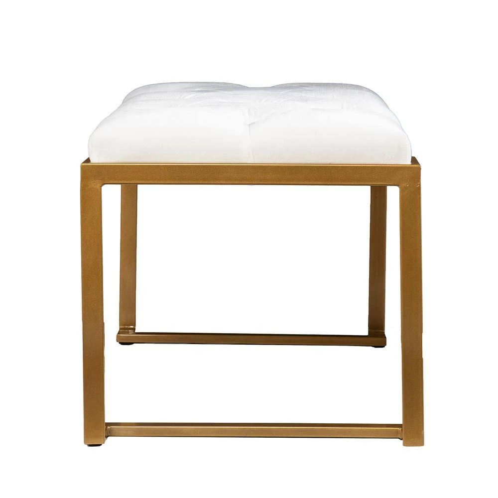 Sit in style with this contemporary bench seat. White velvet upholstery offers luxurious texture, while classic tufting adds a sophisticated feel to your decor. Gold-footed legs provide sleek support,crafting a modern look in your living area or reading nook. Enjoy an eye-catching accent in your entryway or a functional seat at the foot of your bed with this upholstered bench.