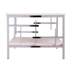Davis 48 in. Chrome Large Rectangle Stone Coffee Table with Shelf by Southern Enterprises