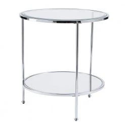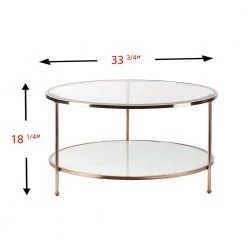 Cillian 34 in. Chrome Medium Round Glass Coffee Table with Shelf by Southern Enterprises