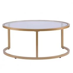 Narita 36 in. Gold Medium Round Glass Coffee Table with Nesting Tables by Southern Enterprises