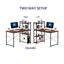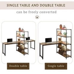 90 in. Rectangular Brown MDF Home Office 2 Person Computer Desk with Storage Shelves by Huluwat