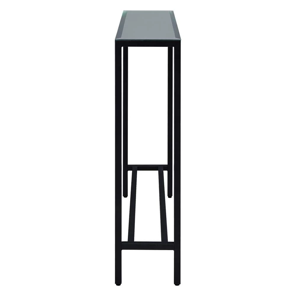 Functional furniture and decorative decor. Slender in size, this metal console does it all. Clean, metallic lines add a subtle accent to any room, complete with beveled mirror reflection. Utilize this narrow console table to display your eye-catching accessories behind the sofa, craft a hallway hub, or give yourself the recognition you deserve by showcasing mementos and accomplishments in your office space.