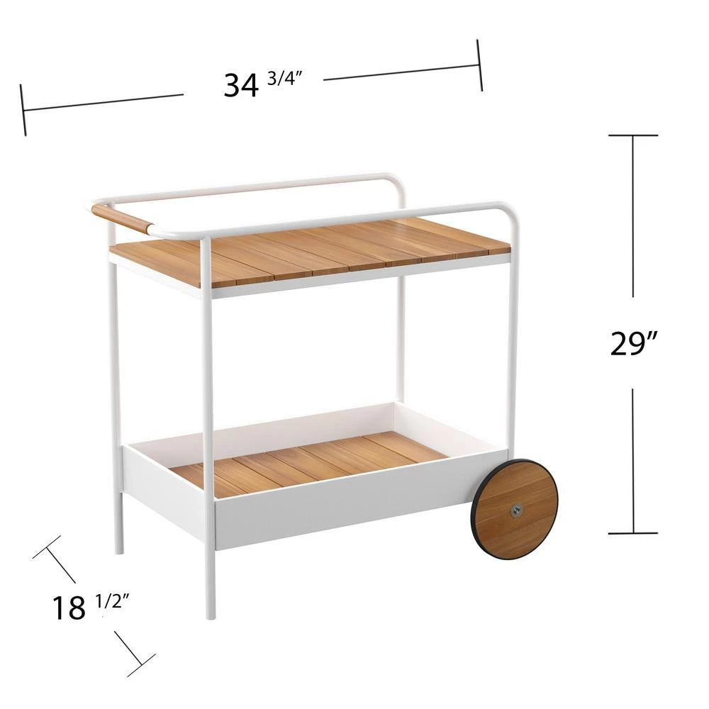 Roll out refreshments with this indoor/outdoor bar cart. Serve up spirits and appetizers from the sustainable acacia top, while a lower shelf keeps your bar accessories and extra snacks close at hand. Station in your sunroom to showcase your flowers, plants, and greenery, or effortlessly deliver drinks to guests relaxing by the pool. Make outdoor entertaining easy when you add this modern beverage cart to your patio decor.