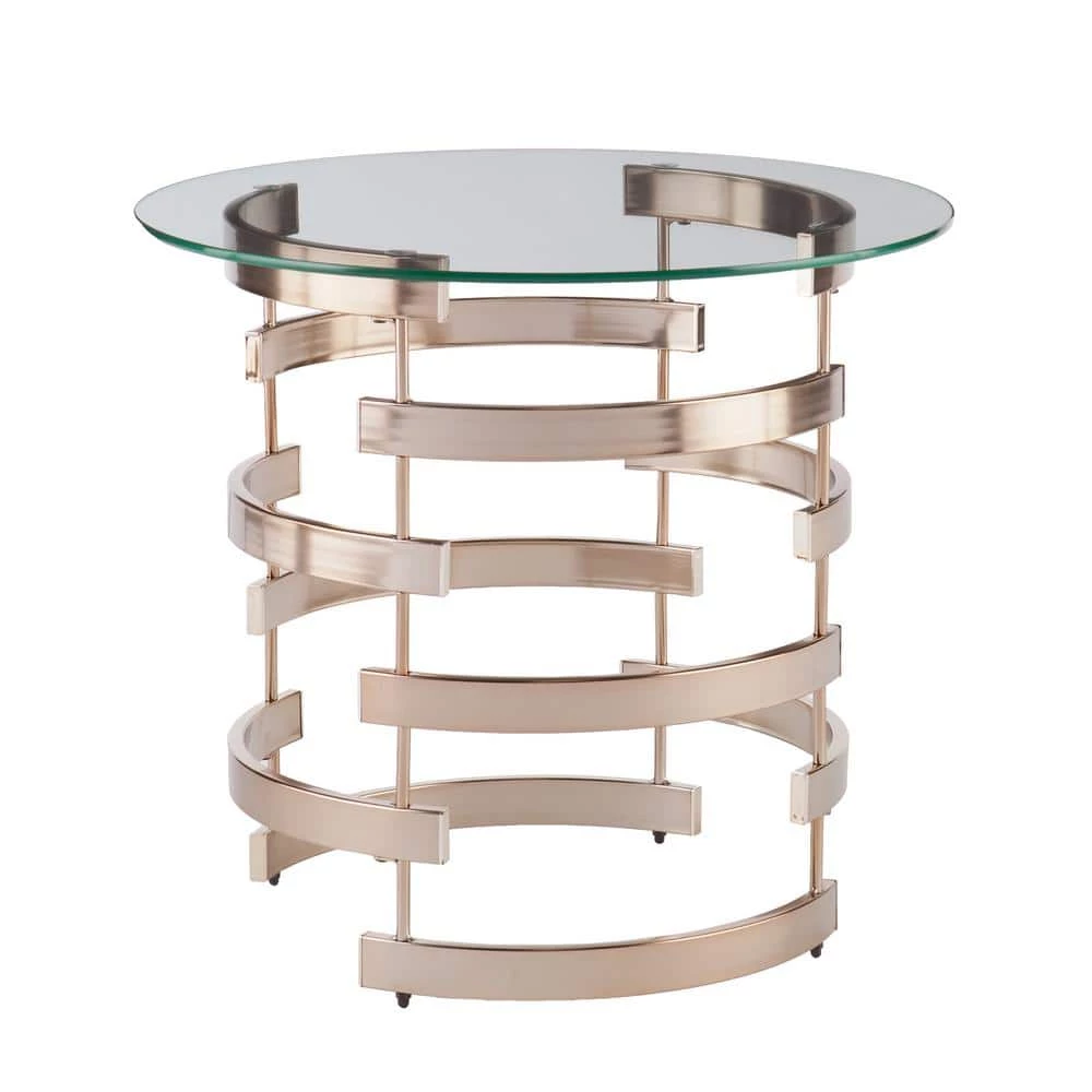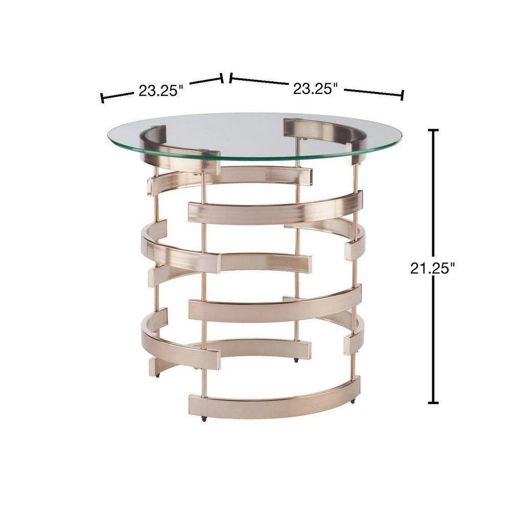 Set the Southern Enterprises Raymond End Table at the end of your couch to instantly complete the design of your room. This end table has a modern style, making it an aesthetically pleasing addition to your living space. It features a glass top, which will create a spacious look. With a metal frame, this end table makes a perfect choice for adding modern features to your living space.