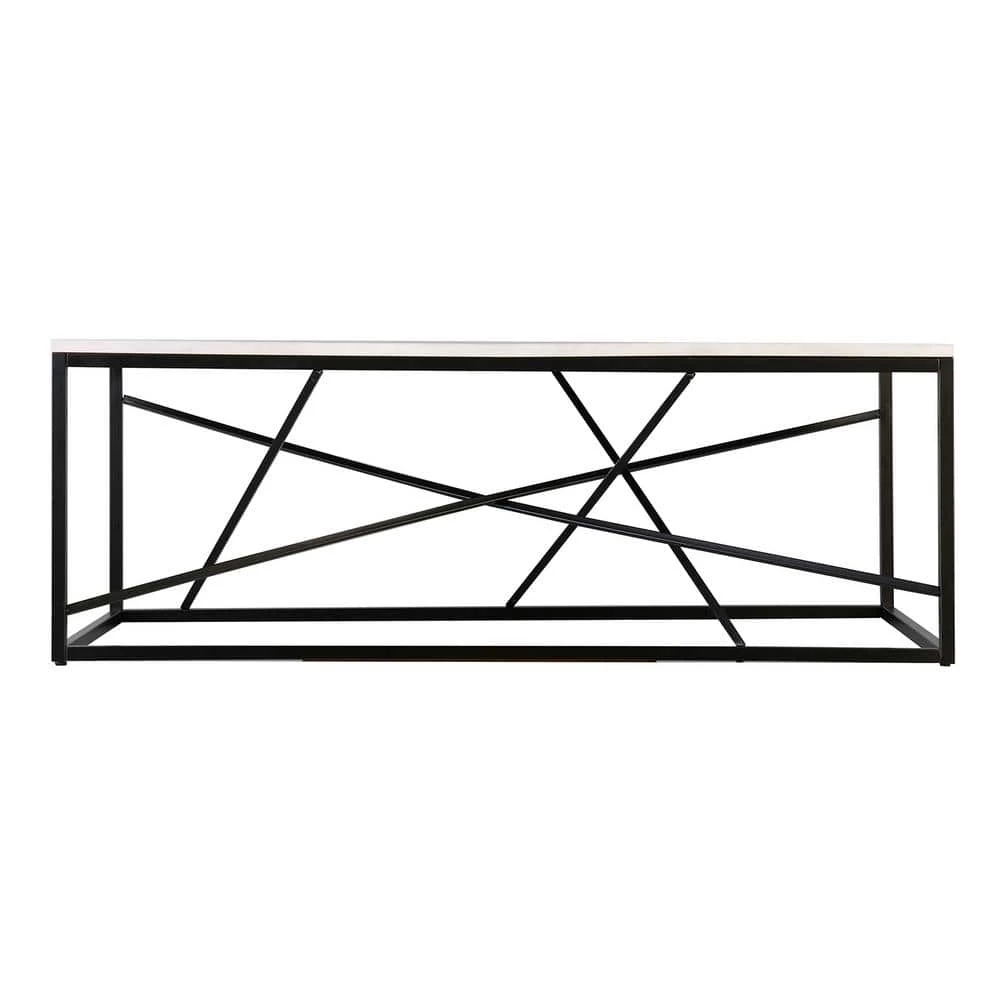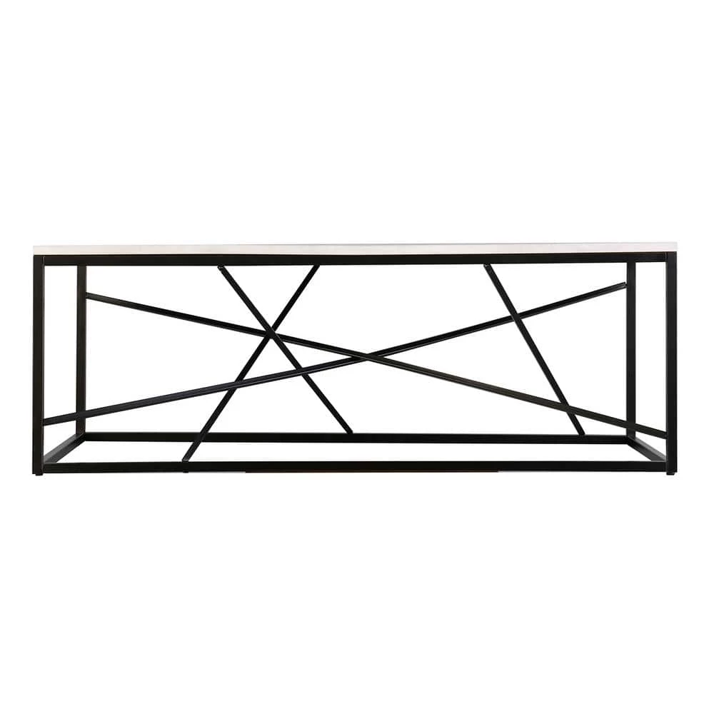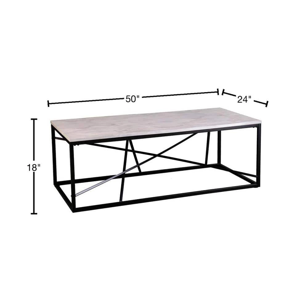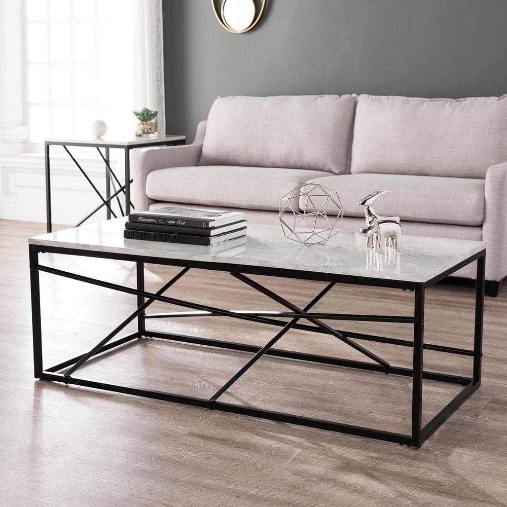 Manifest contemporary style with this geometric black and white cocktail table. Create a chic look in your living space by using this white, faux marble coffee table for anything from beverages to books. Sleek, black metal crosses for a sturdy base, holding this faux marble table to high standards in your modern living room.